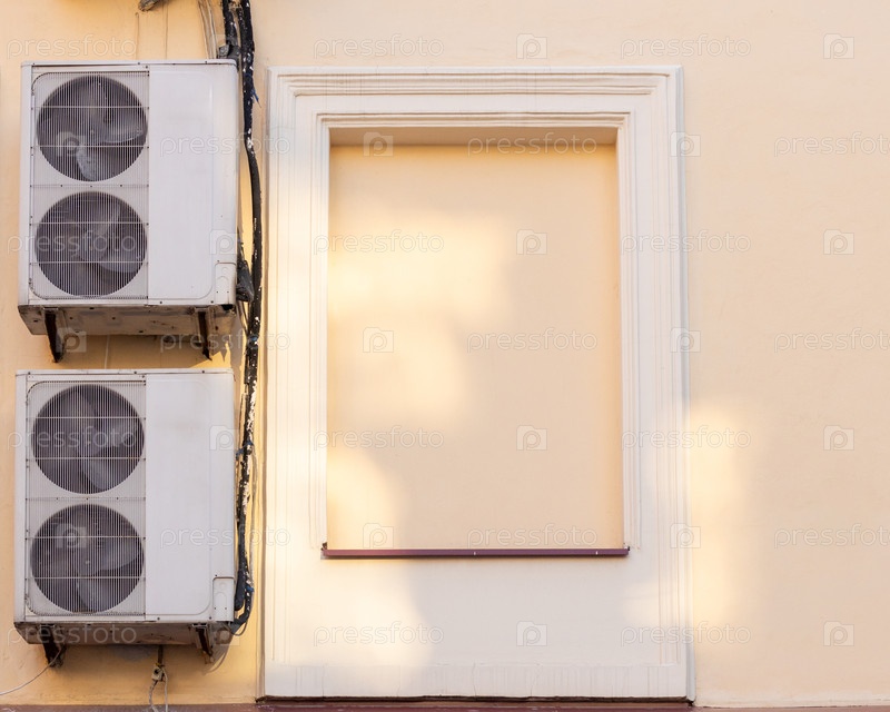 Кондиционеры установлены на стене. технология охлаждения воздуха в жаркую погоду