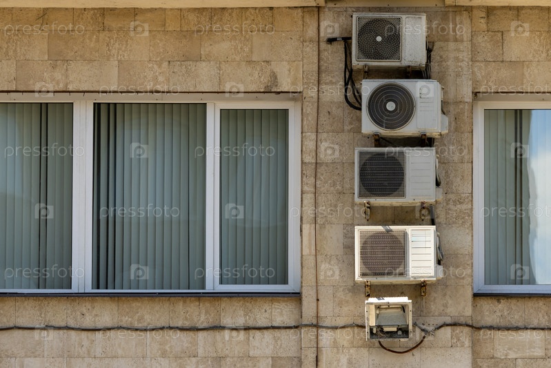 Кондиционер на фасаде дома, система вентиляции и охлаждения