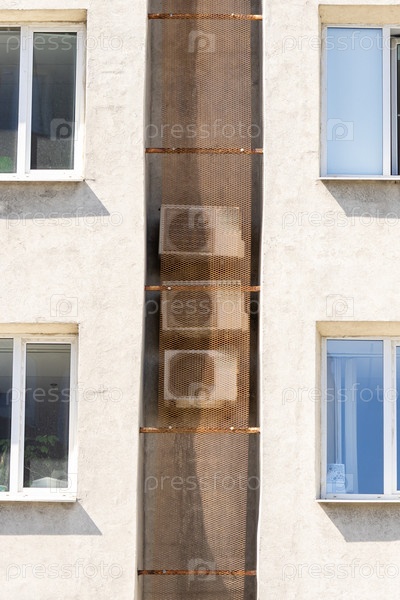 Кондиционер на фасаде дома, система вентиляции и охлаждения