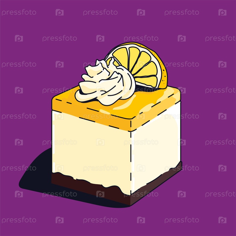 Лимонный чизкейк с кремом. плоская иллюстрация в стиле мультфильма