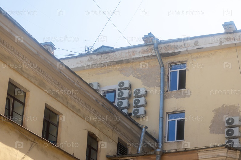 Кондиционер на фасаде дома, система вентиляции и охлаждения
