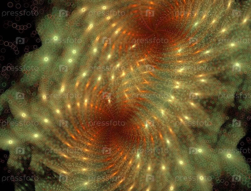 Абстрактный спиральный компьютерный фрактал с двумя центрами