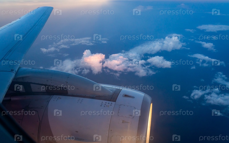 Вид с иллюминатора самолета на облака