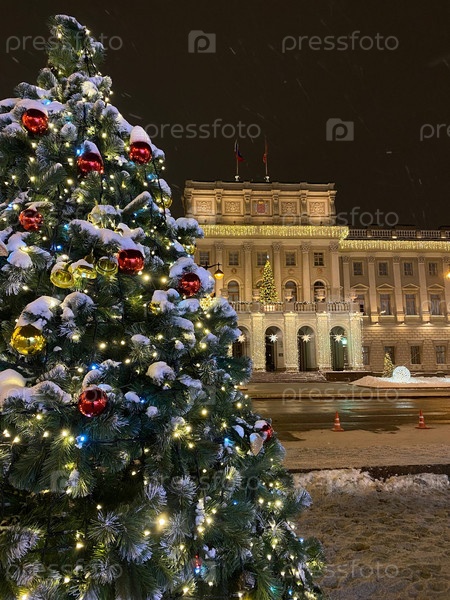 Новогодняя елка в новогоднем саду Санкт-Петербурга