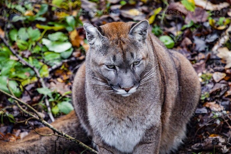 Пума (кумар) в осеннем лесу