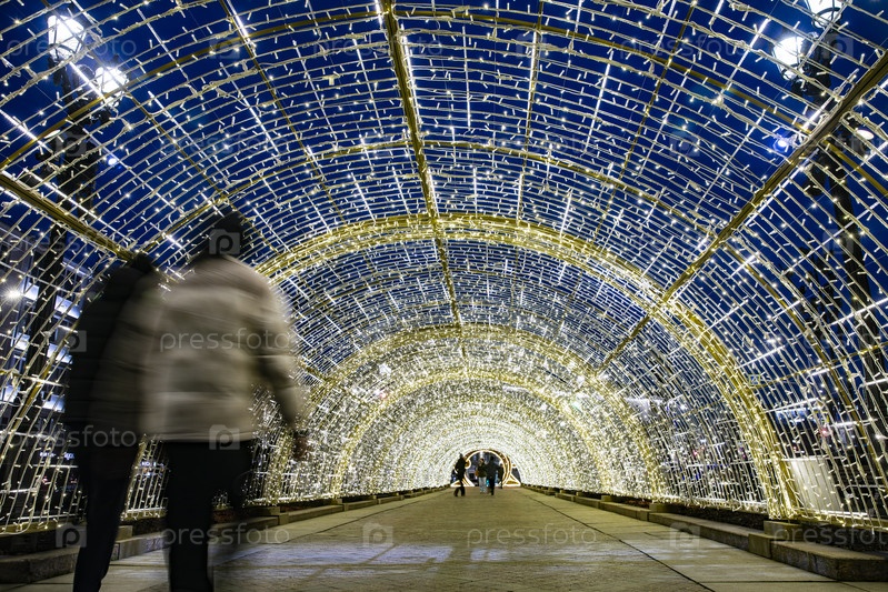 Световой тоннель с новогодним освещением в Москве на Никитском бульваре