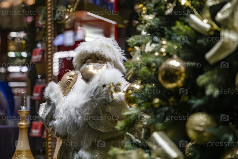 Дед Мороз у украшенной новогодней елки