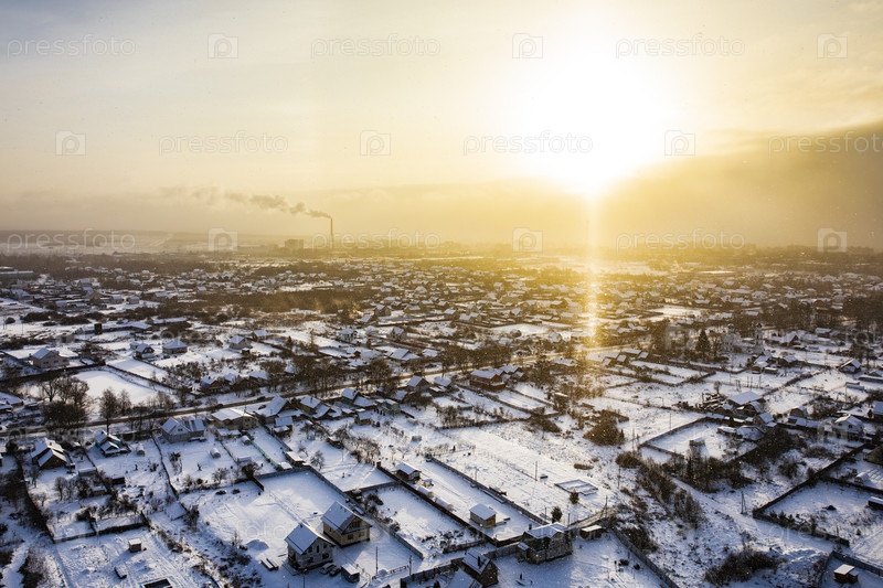 Переславль-Залеский на рассвете, аэрофотографии, дымящаяся труба ТЭЦ на горизонте