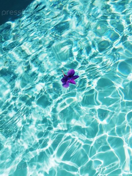 Фото Туркуазная вода бассейна с яркими солнечными отражениями и фиолетовым цветом на поверхности