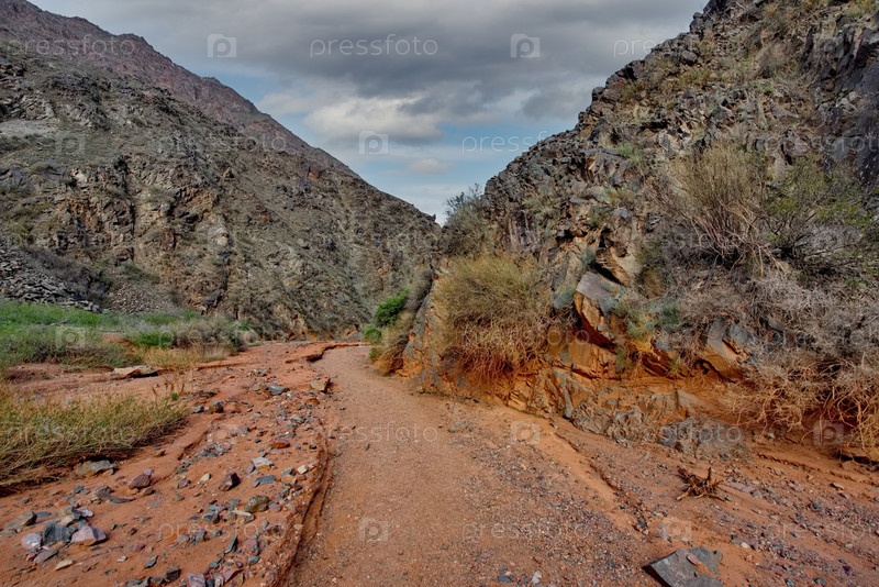 Живописные извилистые тропы каньонов Кок Моинок с красно-коричневыми скалами вдоль северной реки Чу
