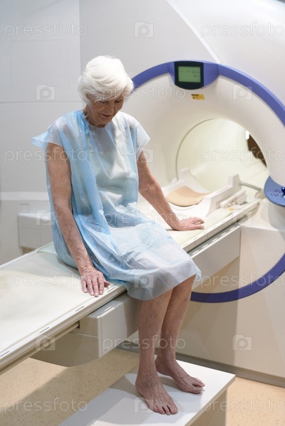 Старшая женщина после МРТ-сканирования в медицинском объекте визуализации