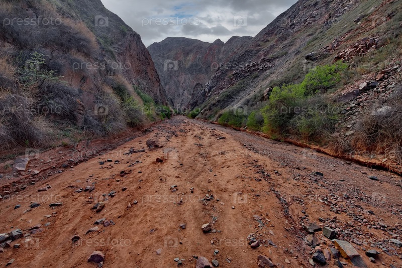 Живописные извилистые тропы каньонов Кок Моинок с красно-коричневыми скалами вдоль северной реки Чу