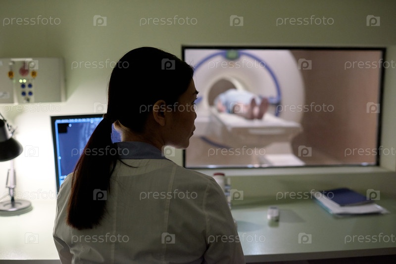 Азиатская женщина-врач, отслеживающая МРИ сканирование женщины