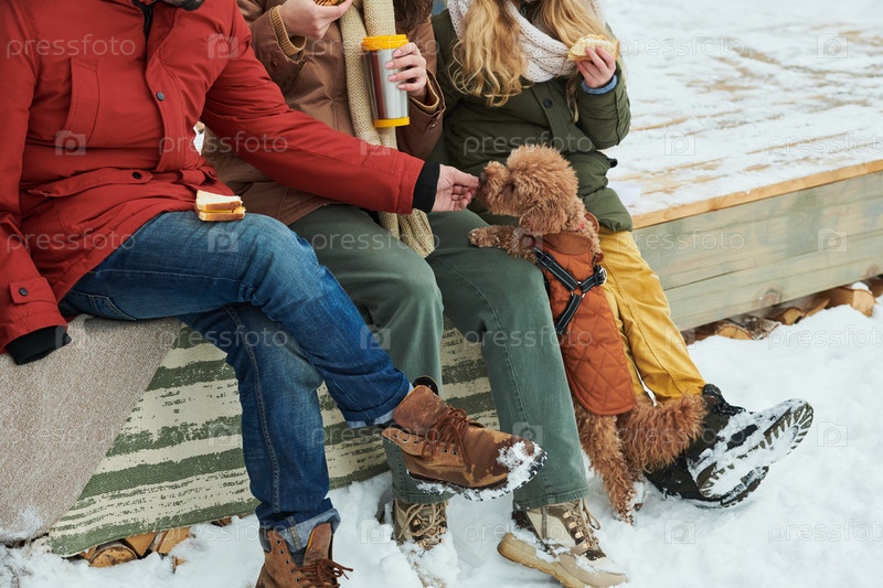 Кормить собаку и есть семейные бутерброды на свежем воздухе
