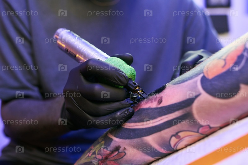 Татуировка мужской руки в профессиональной студии