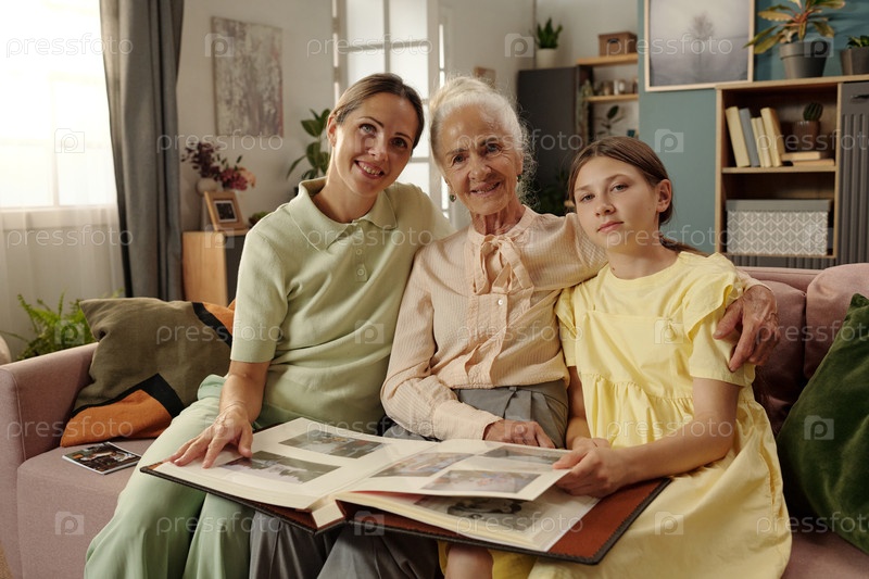 Женщина среднего возраста старшая женщина девушка смотрит на фотоальбом вместе