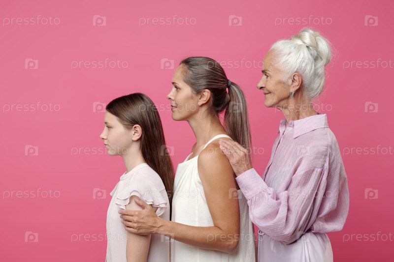 Девочка Молодая взрослая женщина Старшая женщина, стоящая в генерационной линии
