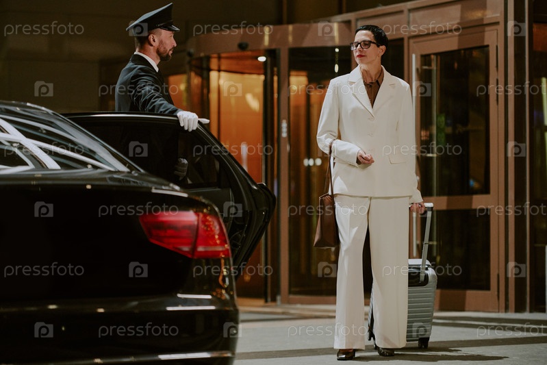 Женщина средних лет прибывает в отель с багажом ночью