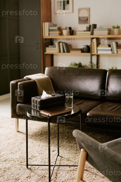 Пустой офис психолога Интерьер показывает терапевтический диван и столовую установку