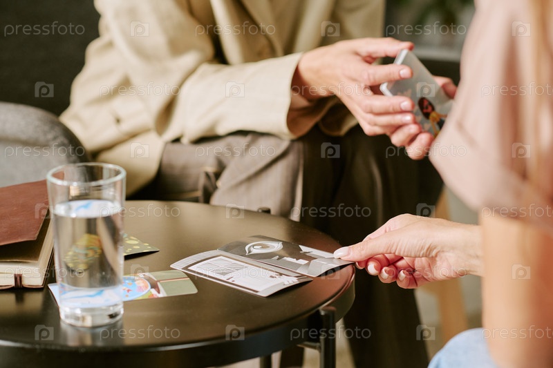 Молодая взрослая женщина обсуждает психологические проблемы во время сеанса терапии