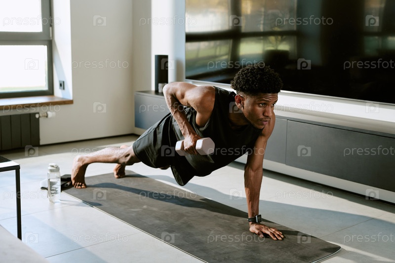 Молодой взрослый чернокожий мужчина, занимающийся гангстером во время утренней тренировки в помещении