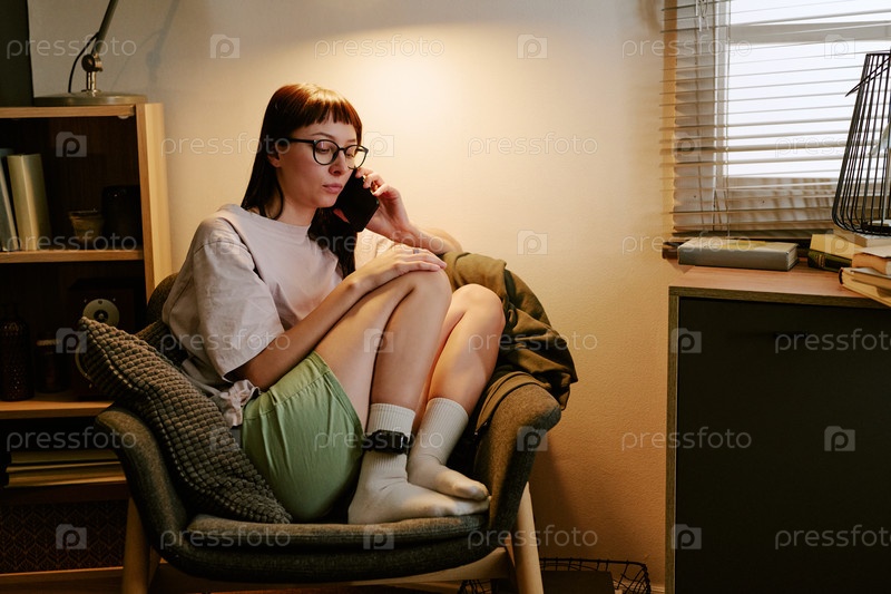 Молодая взрослая бирациальная женщина сидит в помещении, нося монитор лодыжки и разговаривает
