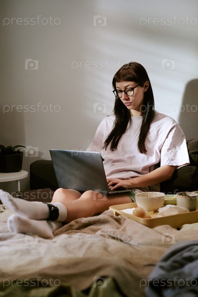 Бирациальная молодая взрослая женщина, использующая ноутбук в то время как носит электронный монитор лодыжки