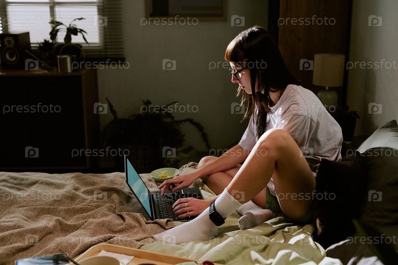 Бирациальная молодая взрослая женщина, работающая удаленно на ноутбуке с монитором лодыжки