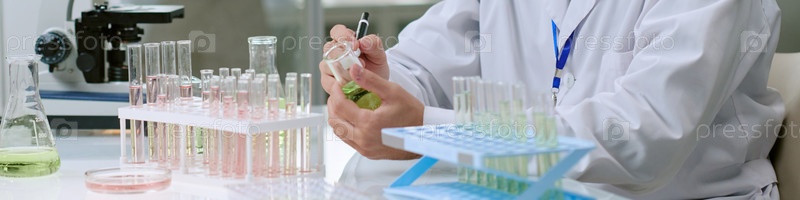 Заголовок Человек, проводящий химический эксперимент в лабораторных условиях