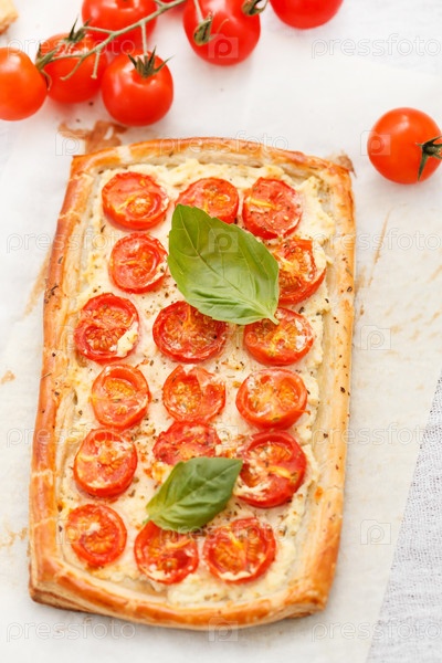 Пирог с заварным кремом, помидором и рикоттой