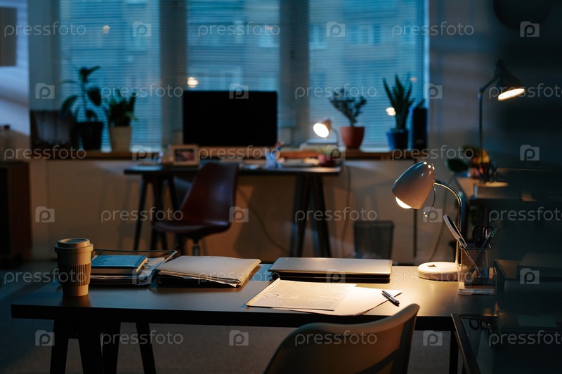 Просторный офис ночью