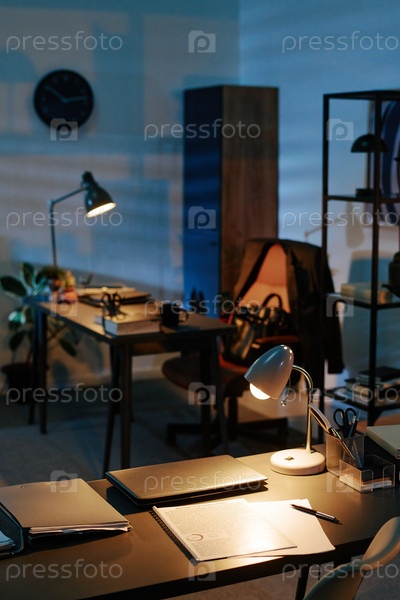 Рабочее пространство в ночное время Офисная работа