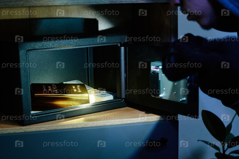 Молодой взрослый мужчина крадет паспорт и деньги из сейфа в офисе