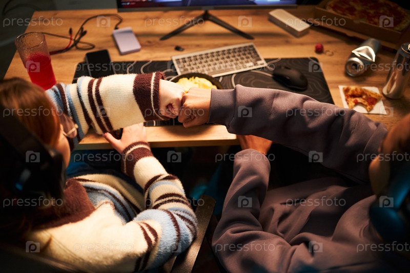 Подростковые друзья празднуют победу, играя вместе в игры внутри
