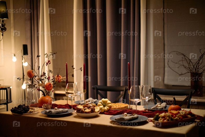 Установка стола в День благодарения, ожидая прибытия друзей