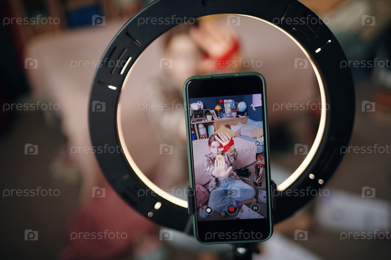 Подросток снимает видео в социальных сетях со смартфоном в спальне