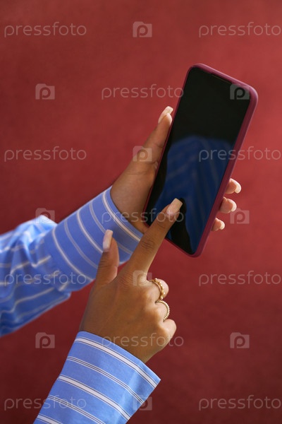 Молодая взрослая женщина цвета использует смартфон для деловой коммуникации