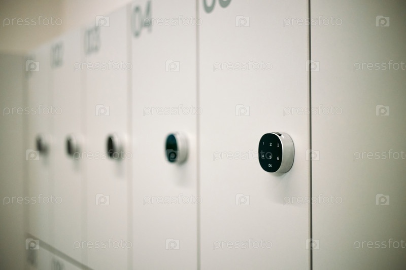 Ряд современных электронных шкафчиков, обеспечивающих защиту личных вещей в бизнес-среде