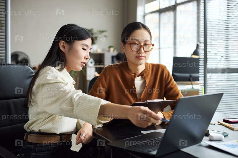 Молодые азиатские бизнес-женщины сотрудничают над проектом в современном офисном рабочем пространстве