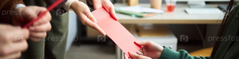 Молодые азиатские бизнесмены и деловые женщины обмениваются документами в офисе