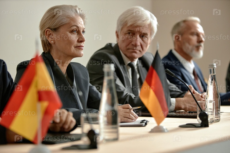 Старшие женщины и мужчины, посещающие Международную политическую конференцию