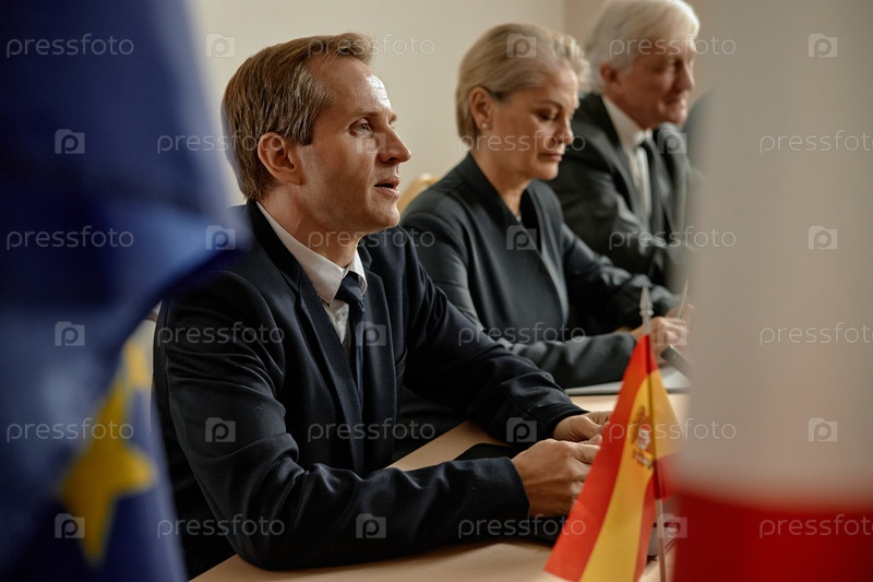 Бизнесмены среднего возраста, посещающие международную конференцию