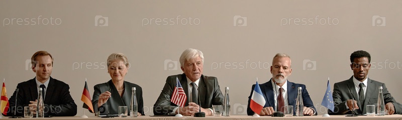 Разнообразная группа бизнесменов среднего возраста, посещающих международную конференцию