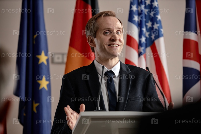 Выступление на подиуме во время Международной конференции мужчины