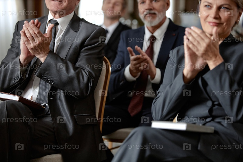 Бизнес-профессионалы среднего возраста аплодируют во время конференции