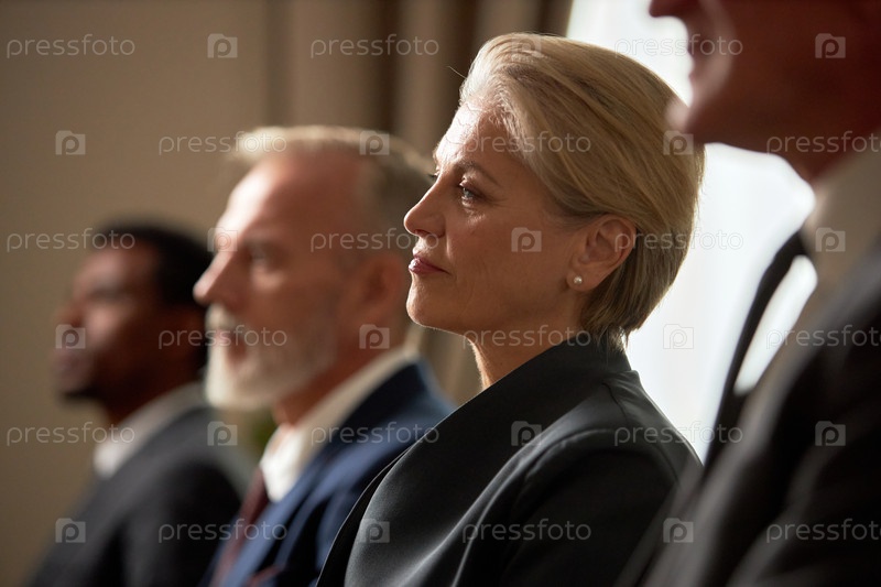 Женщина средних лет посещает деловую встречу с различными коллегами