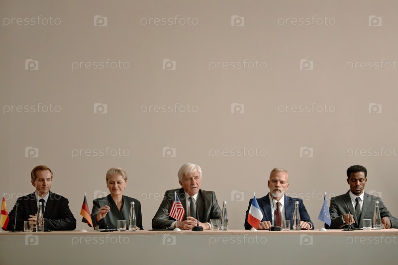 Многоэтнические высокопоставленные и чиновники среднего возраста, участвующие в международной конференции