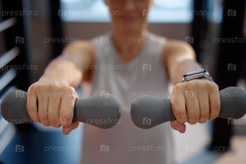 Женщина, занимающаяся гантельками в помещении во время тренировки