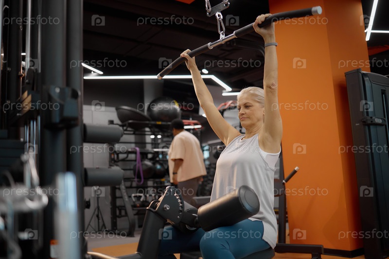 Женщина, тренирующаяся на Lat Pulldown Machine в современном гимнастическом зале