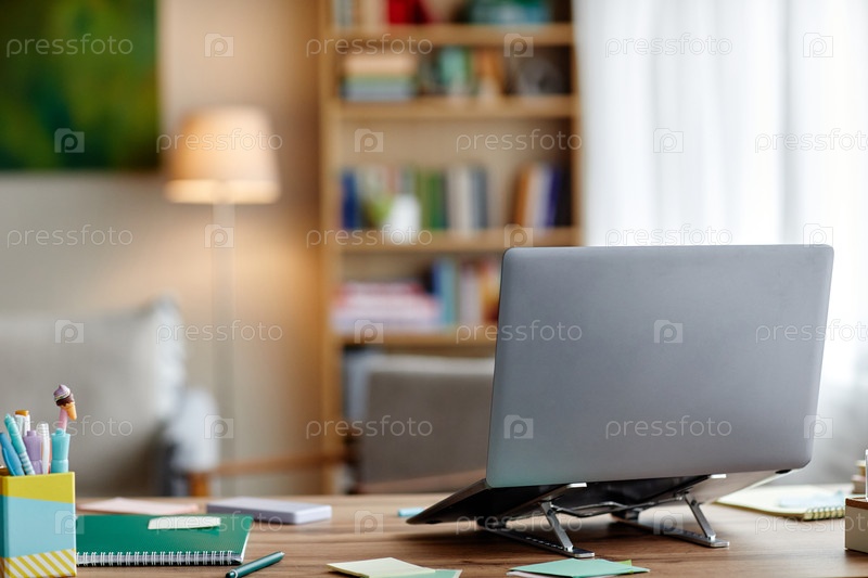 Ноутбук, стоящий на рабочем столе в домашней офисной среде днем